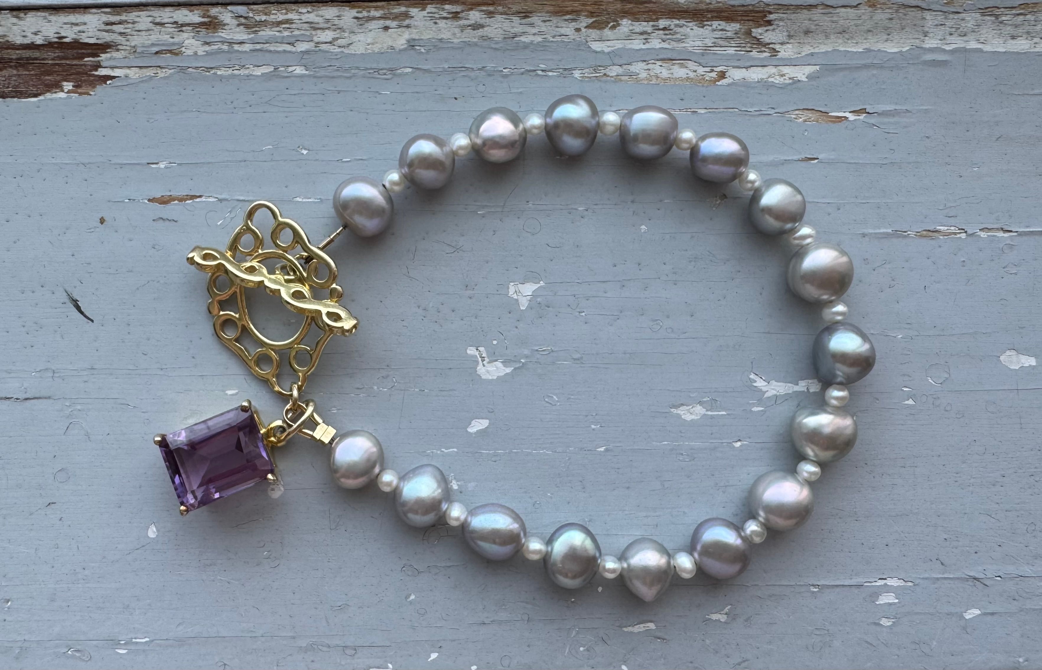 Bracelet 【 amethustos アメテュストス 】 淡水パール、アメジスト
