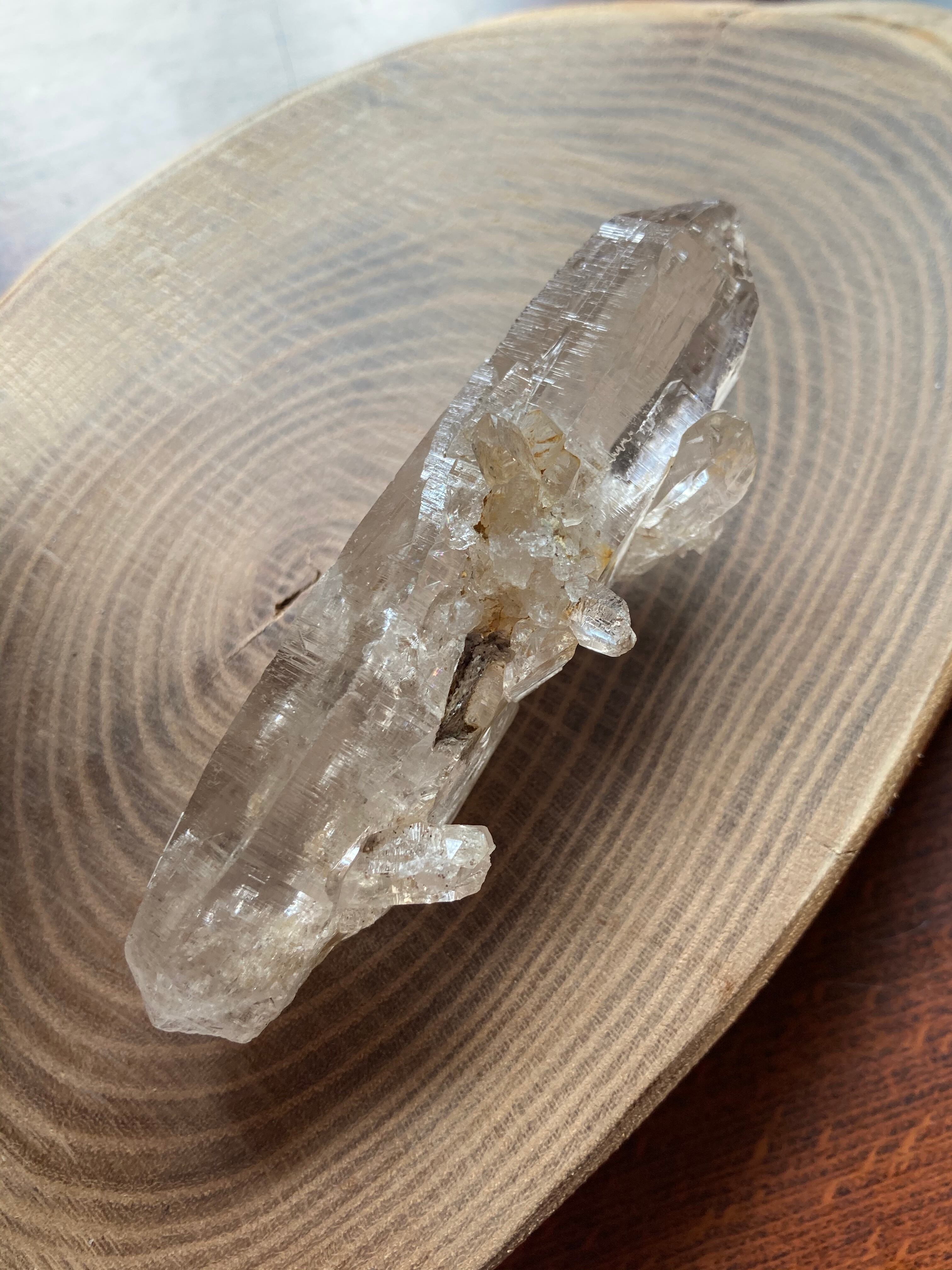 縦と横の条線がくっきりしていたり、クローライトが内包しているものや、先細りになっているものが多く、ぱっと見た時にその佇まいにエッジが効いているものが多い印象です。