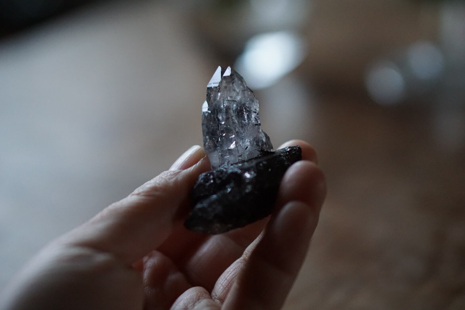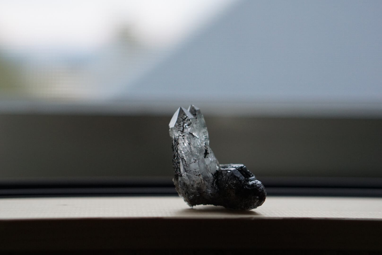 横たわった1本の水晶に寄り添うようにスッと聳える水晶はヒマラヤの高い山を思わせます。