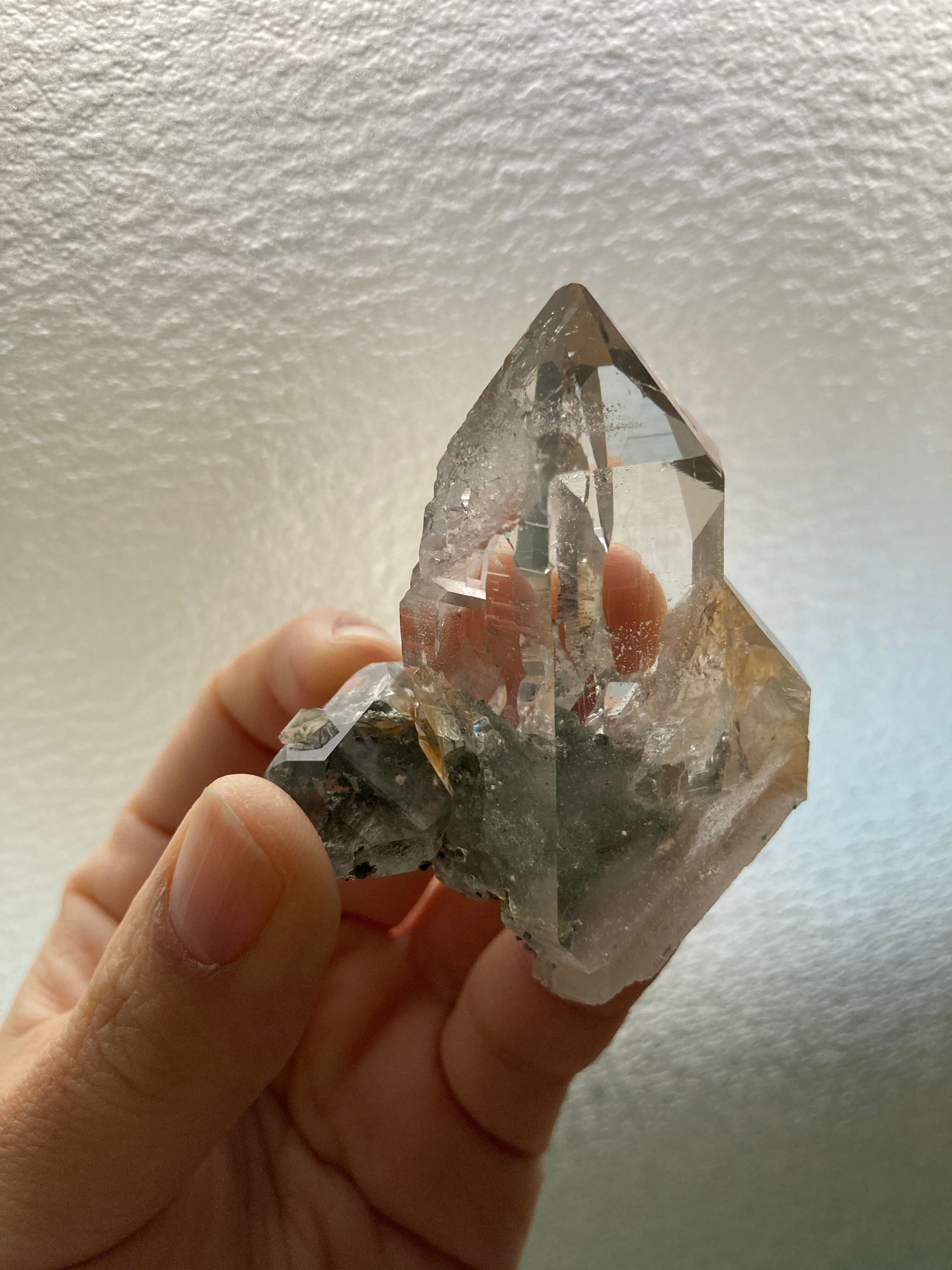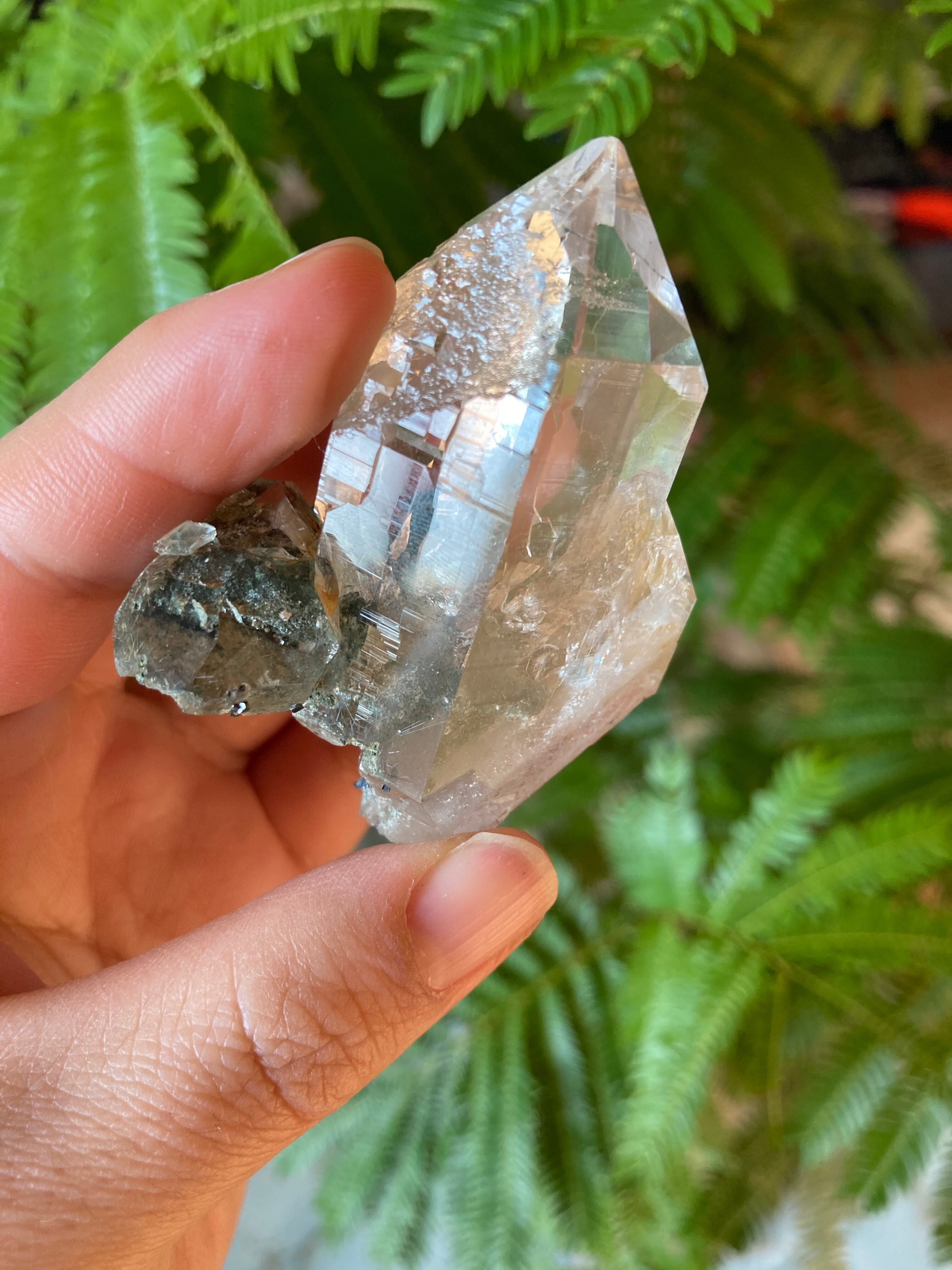 インド マニハール産 ヒマラヤ水晶 ポイント (withクローライト、アナテーズ、ルチル)