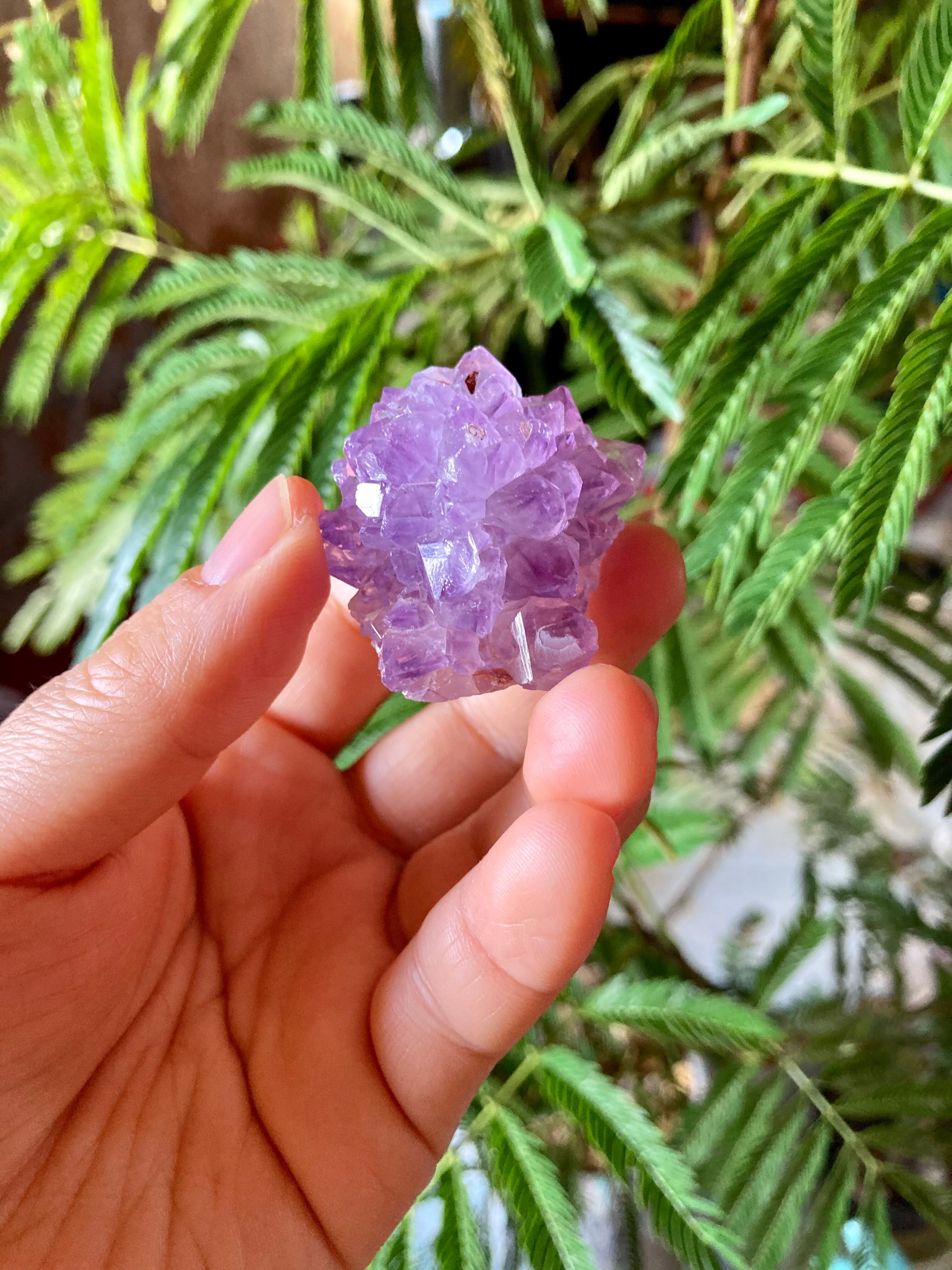 表面がドゥルジー状に成長したインド産のかわいらしいサイズのアメジストです。
