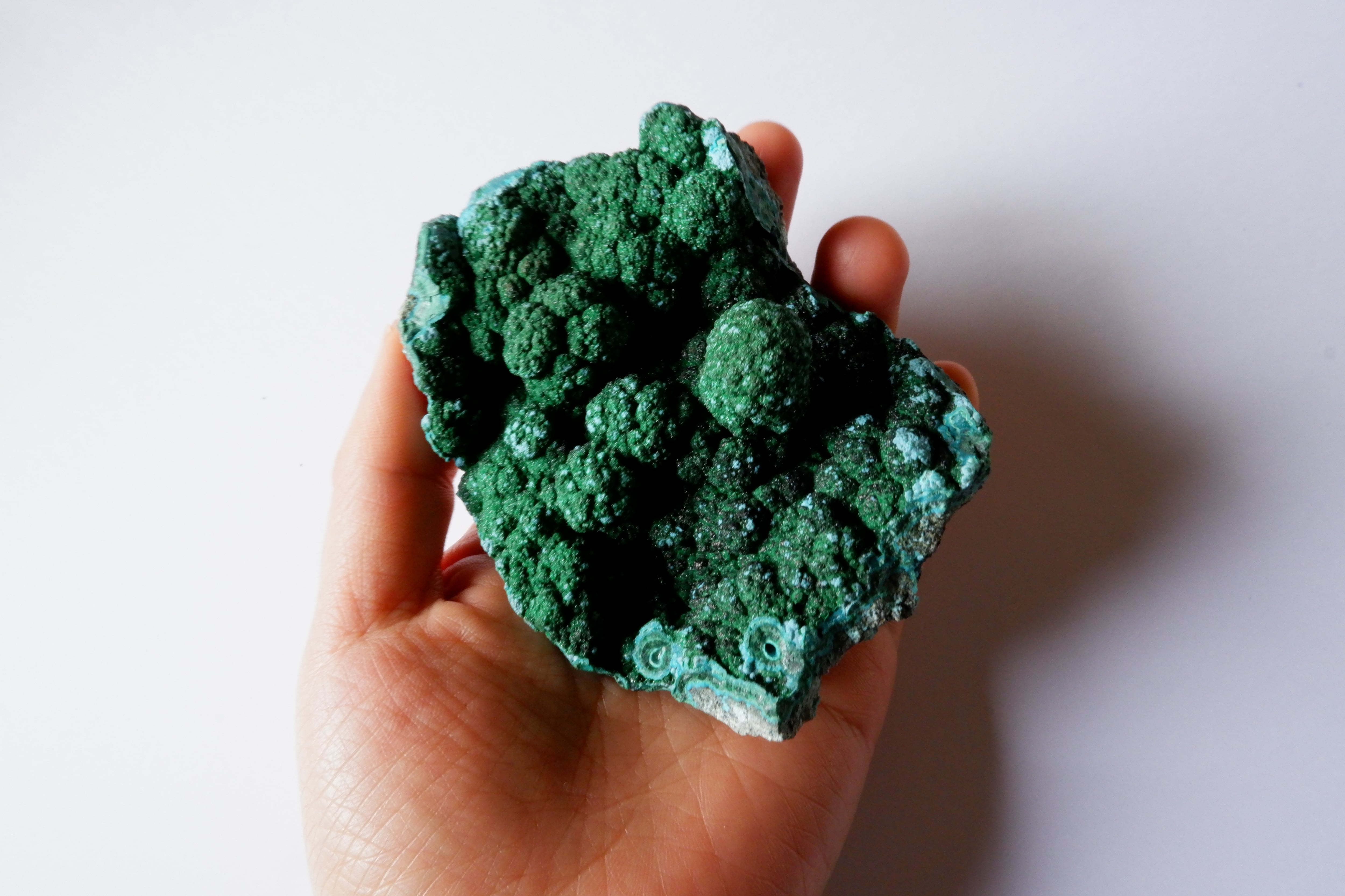 マラカイトは銅鉱床やその他の金属鉱床でよく見られる鉱物ですが、